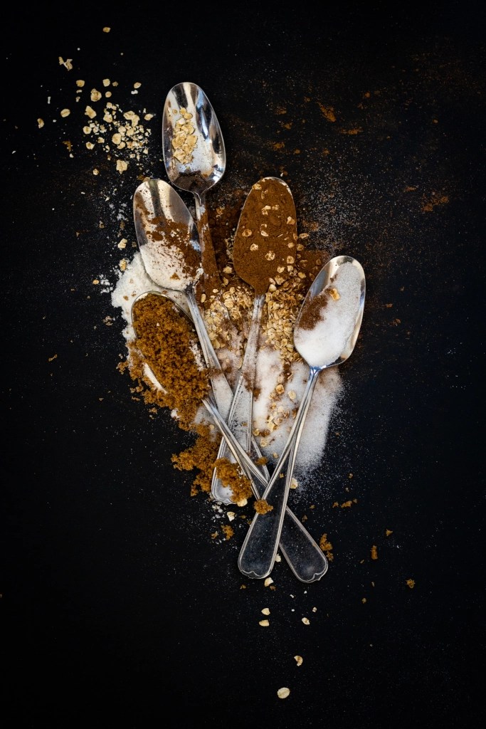 - différentes variétés de sucre ; demerara, de canne brun, de coco, à glacer, etc