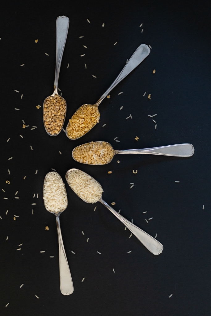 Différentes sortes de riz, dont certains sont biologiques; basmati, riz à grain long brun, riz à sushi, etc